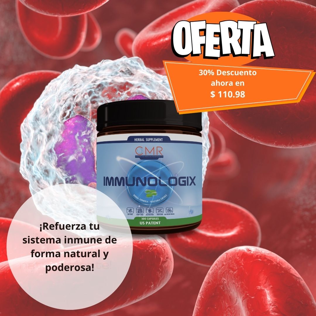 Leer másEs una formulación de 21 plantas comprobadas para fortalecer el sistema inmunológico y tratar enfermedades derivadas de la depresión inmune. Sus ingredientes, incluyendo extractos de hongos y hierbas como Coriolus Versicolor y Reishi, ayudan a combatir infecciones y mejorar la calidad de vida. ¡Obtén una mejor salud con Immunologix!