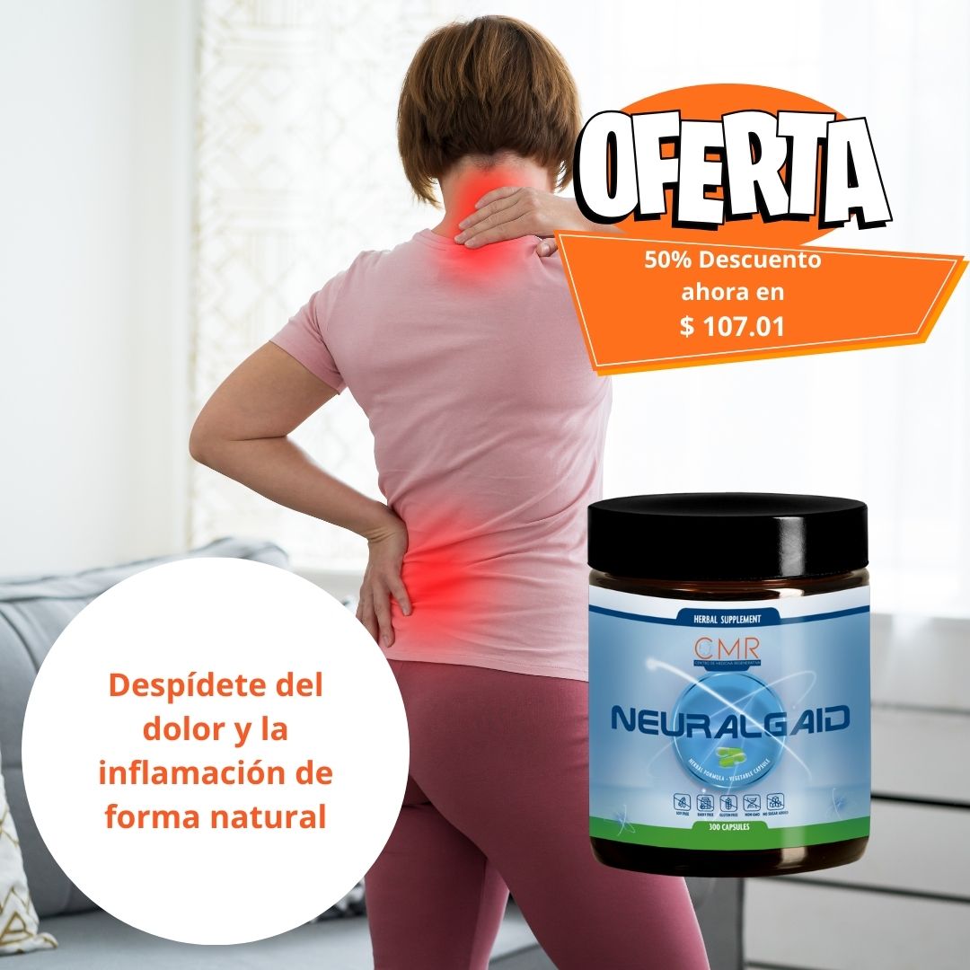 Leer másEs un antiinflamatorio natural y efectivo para tratar neuralgias e inflamaciones. Su fórmula herbolaria combina plantas antiinflamatorias probadas clínicamente, utilizadas durante siglos para tratar afecciones como artritis, neuropatías y neuralgias. Además, ayuda a reducir el dolor al aumentar los opioides endógenos y regular los canales de calcio en los nervios.